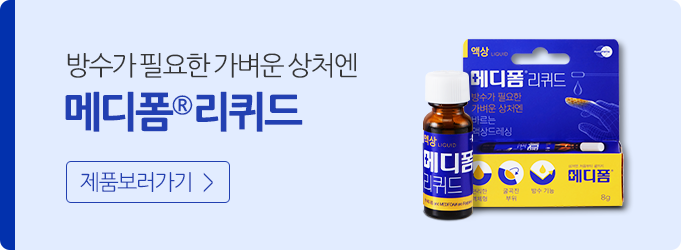 방수가 필요한 가벼운 상처엔 메디폼®리퀴드 밴드사용이 어려운 굴곡 부위 바르는 액상타입